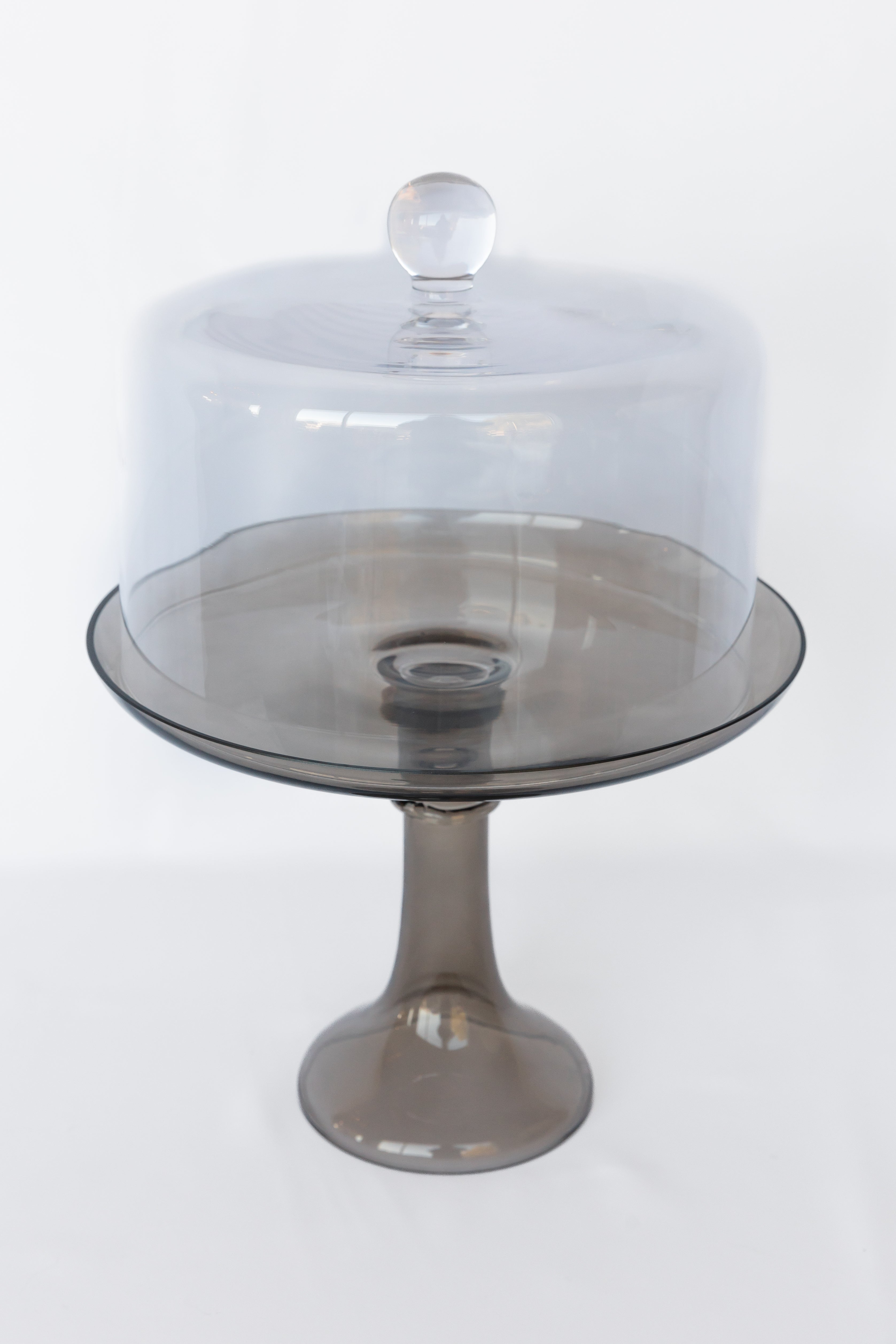 Ring-detailed Bulbous-base Glass Cake Stand with Dome