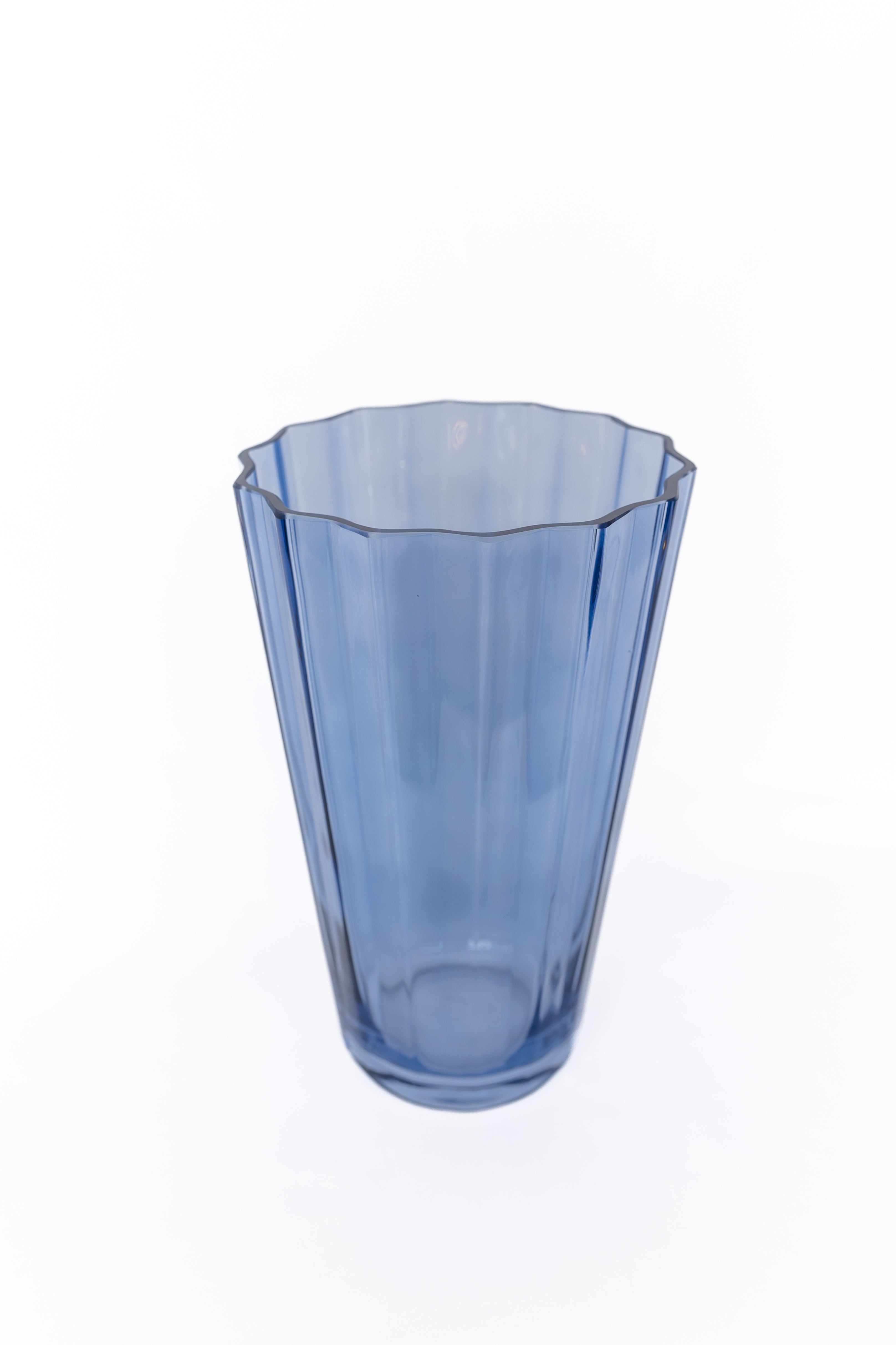 Scalloped-rim Vertically-fluted Tapered Glass Vase