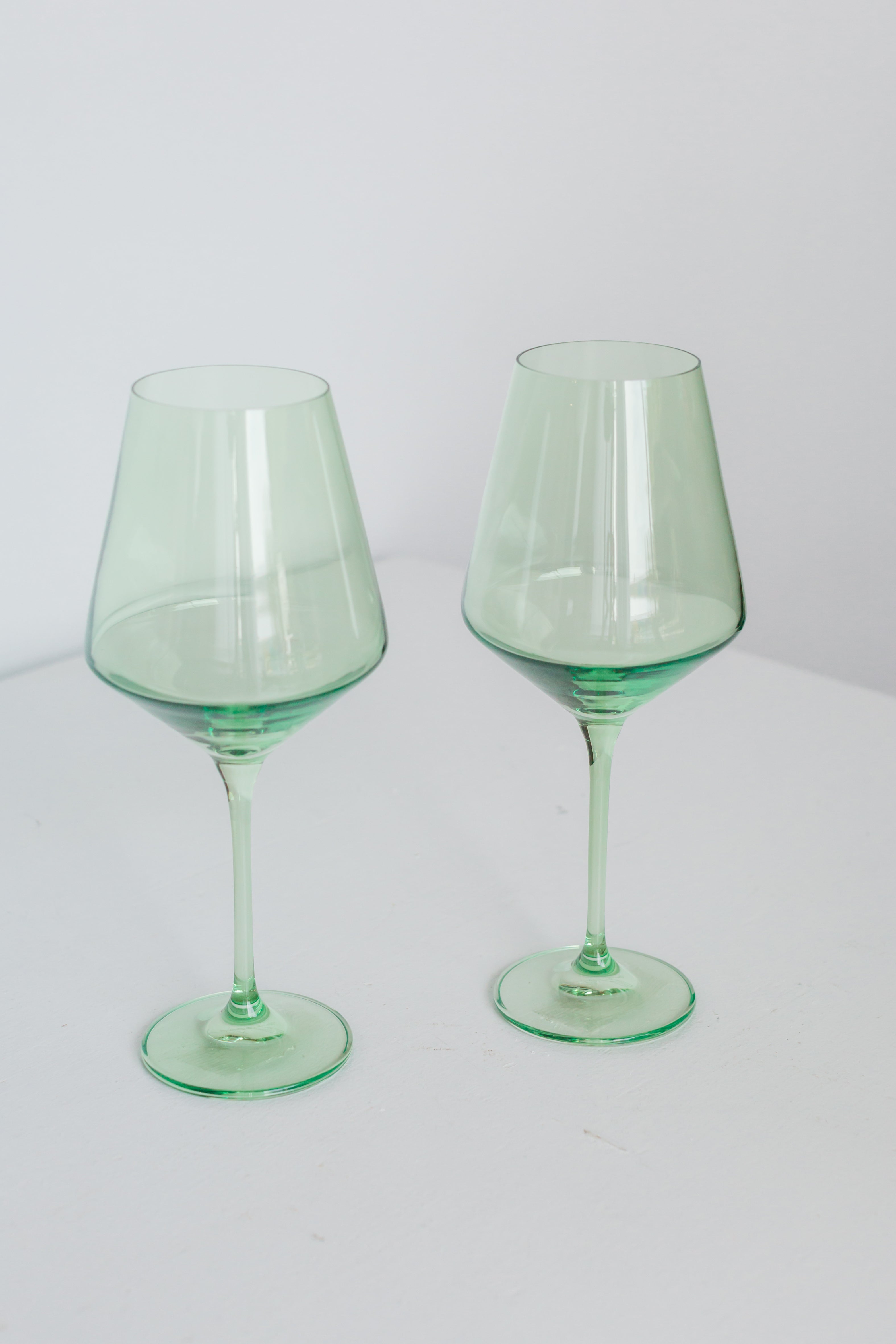 Modern Tapered Stemmed Green-tinted Wine Glass Set