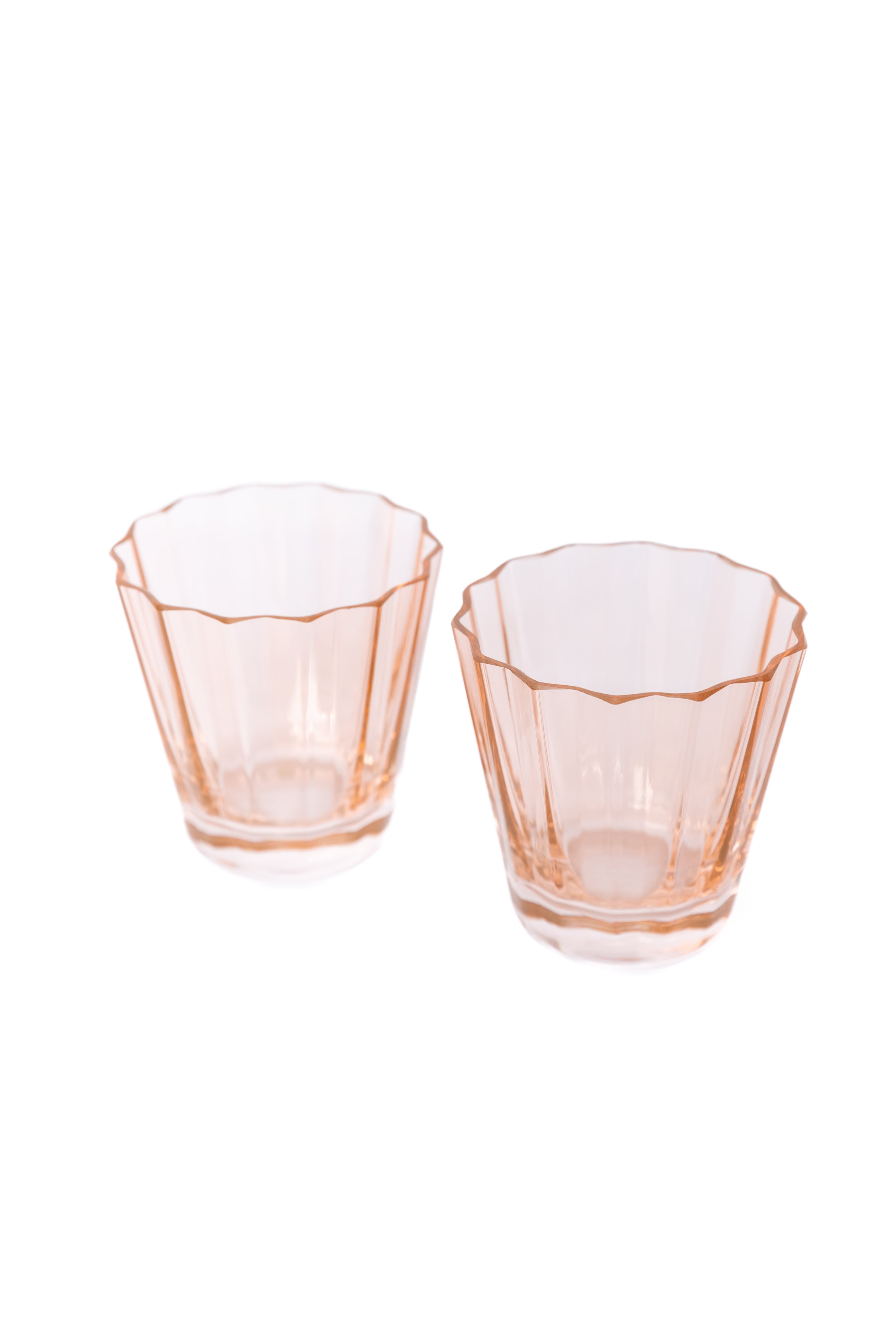 Scalloped-rim Fluted Low Ball Drinking Glass Set of 2