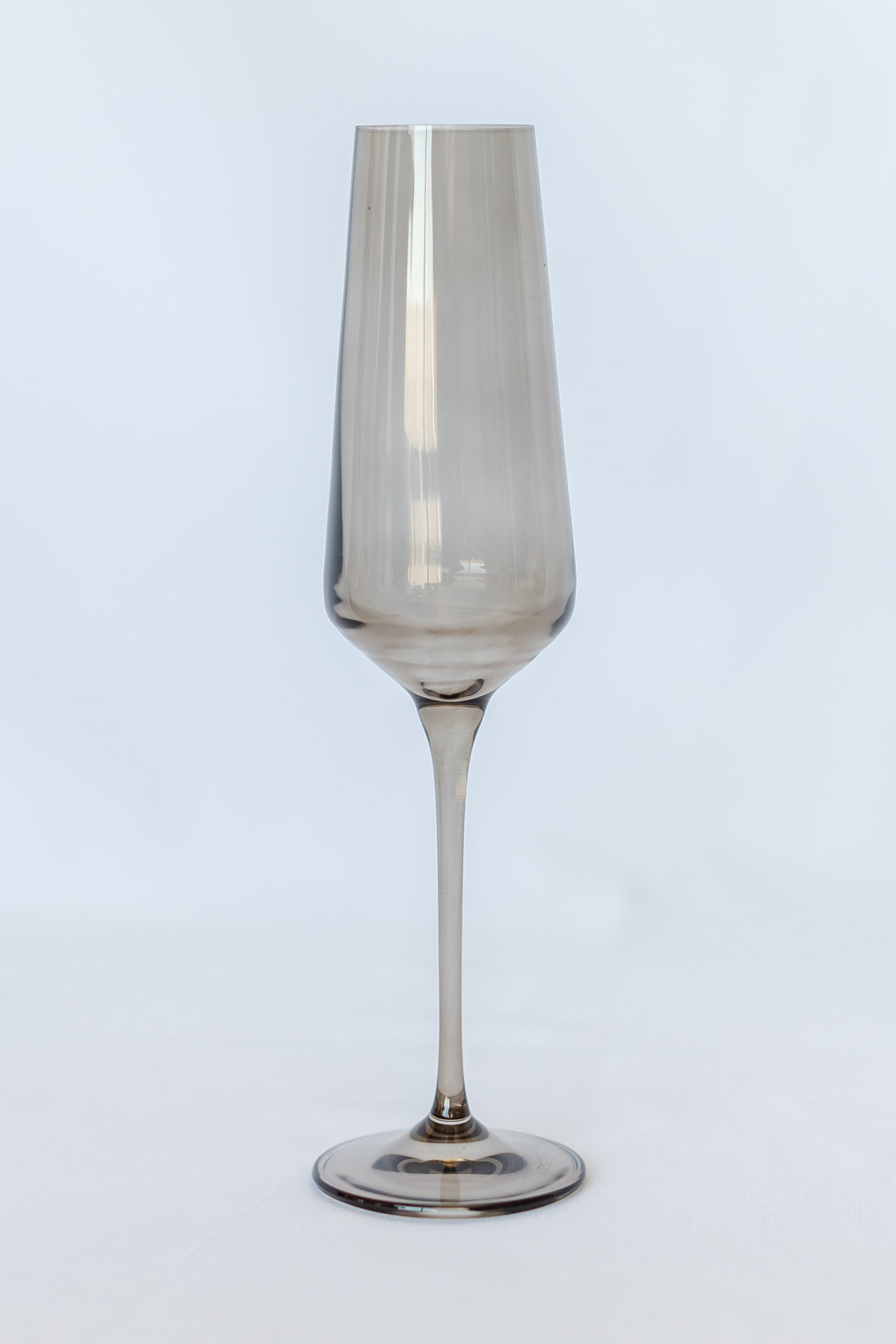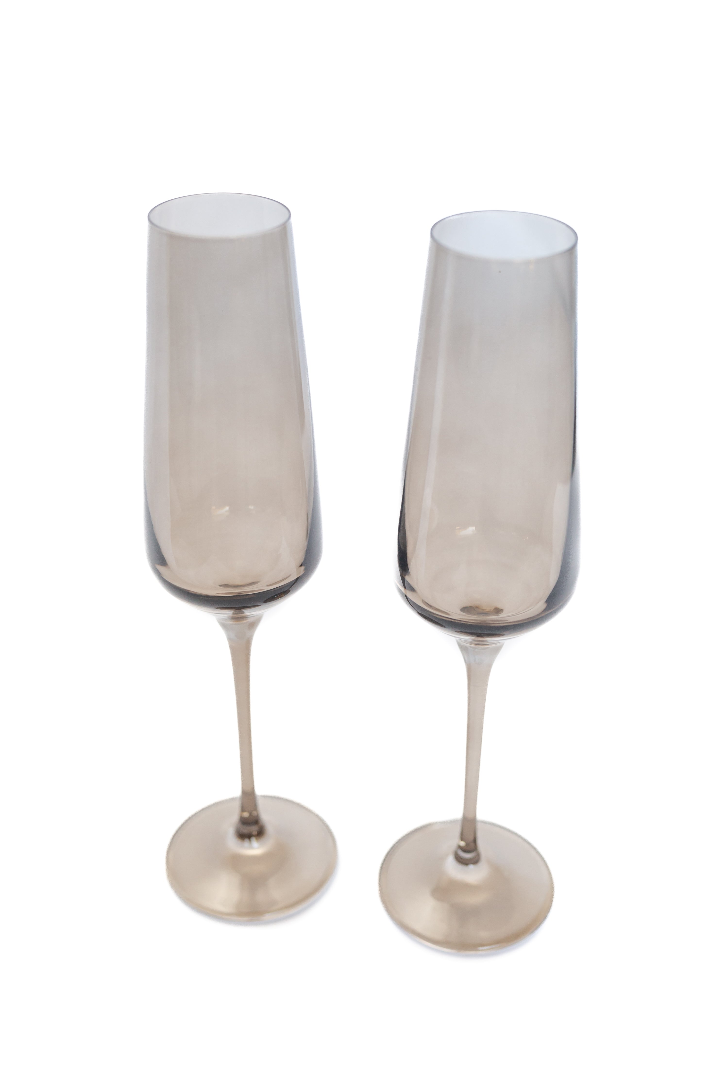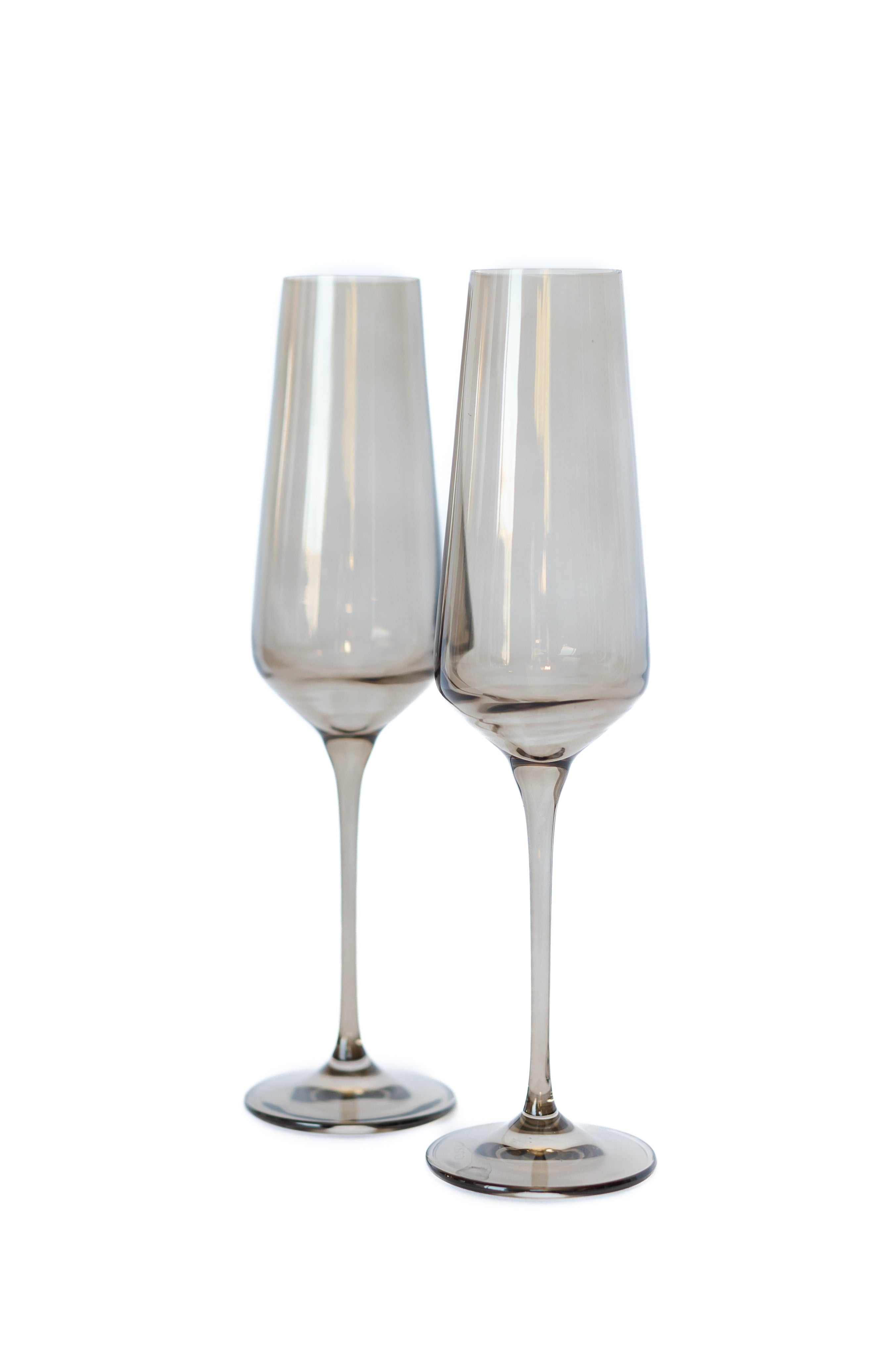 This set comprises two minimalist champagne flutes, crafted from hand – blown glass by artisans in Poland. The glasses have a subtle gray tint and a seamless – tapered design. Their conical bowl, tall stem, and weighted base not only look elegant but also serve functional purposes for enjoying sparkling beverages.