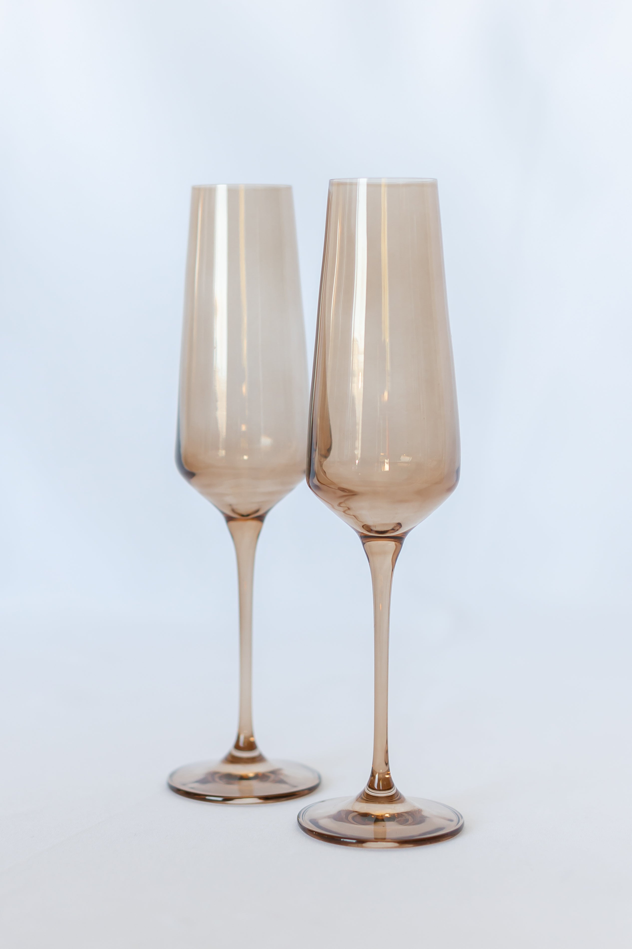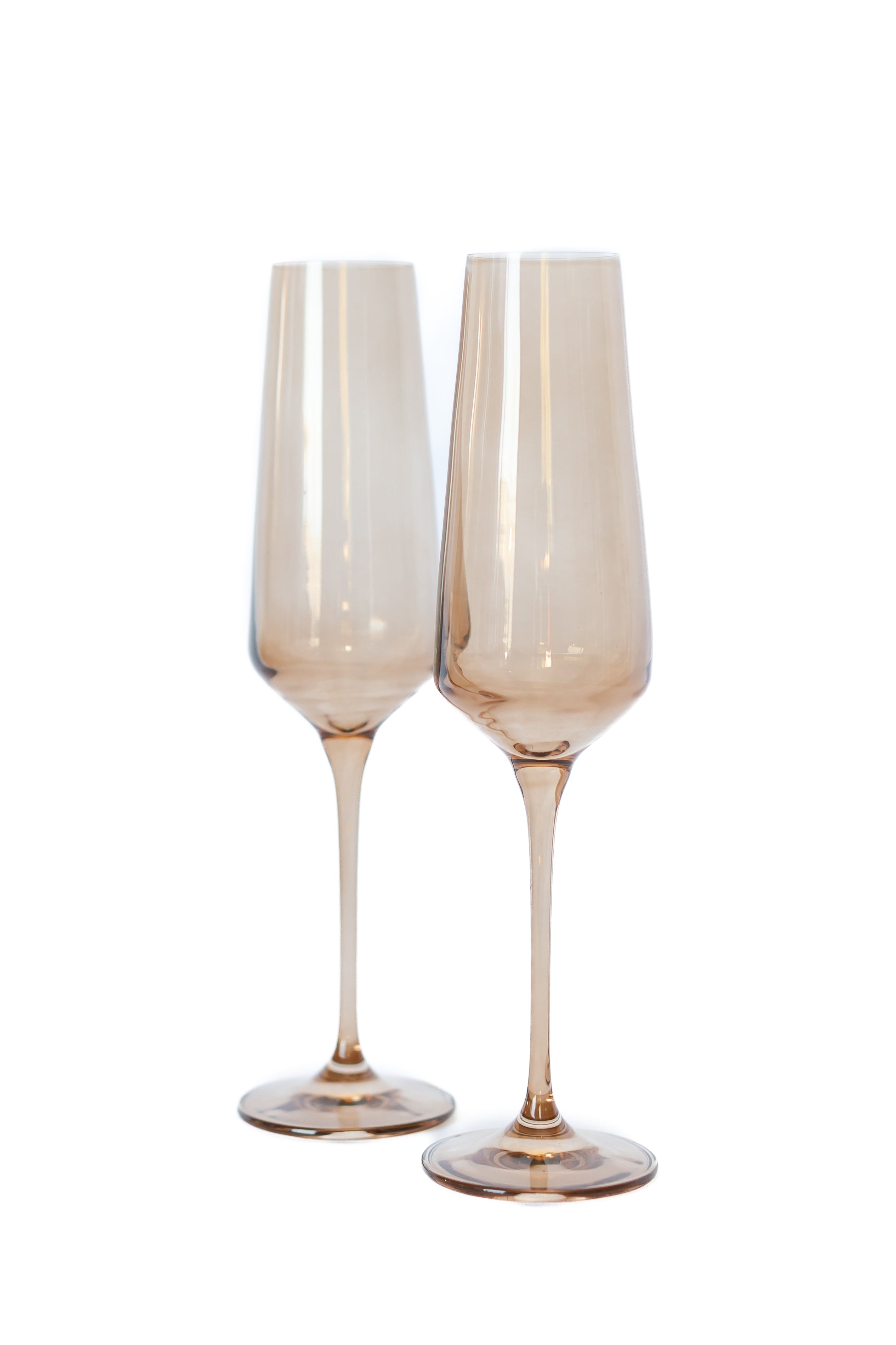 This set consists of two champagne flutes made from high – quality colored glass. They have a warm, peach – toned amber tint, a classic champagne flute shape with a tall, tapering bowl, a slender stem, and a circular base. Hand – blown by artisans in Poland, these flutes are perfect for preserving the qualities of champagne and other sparkling drinks.