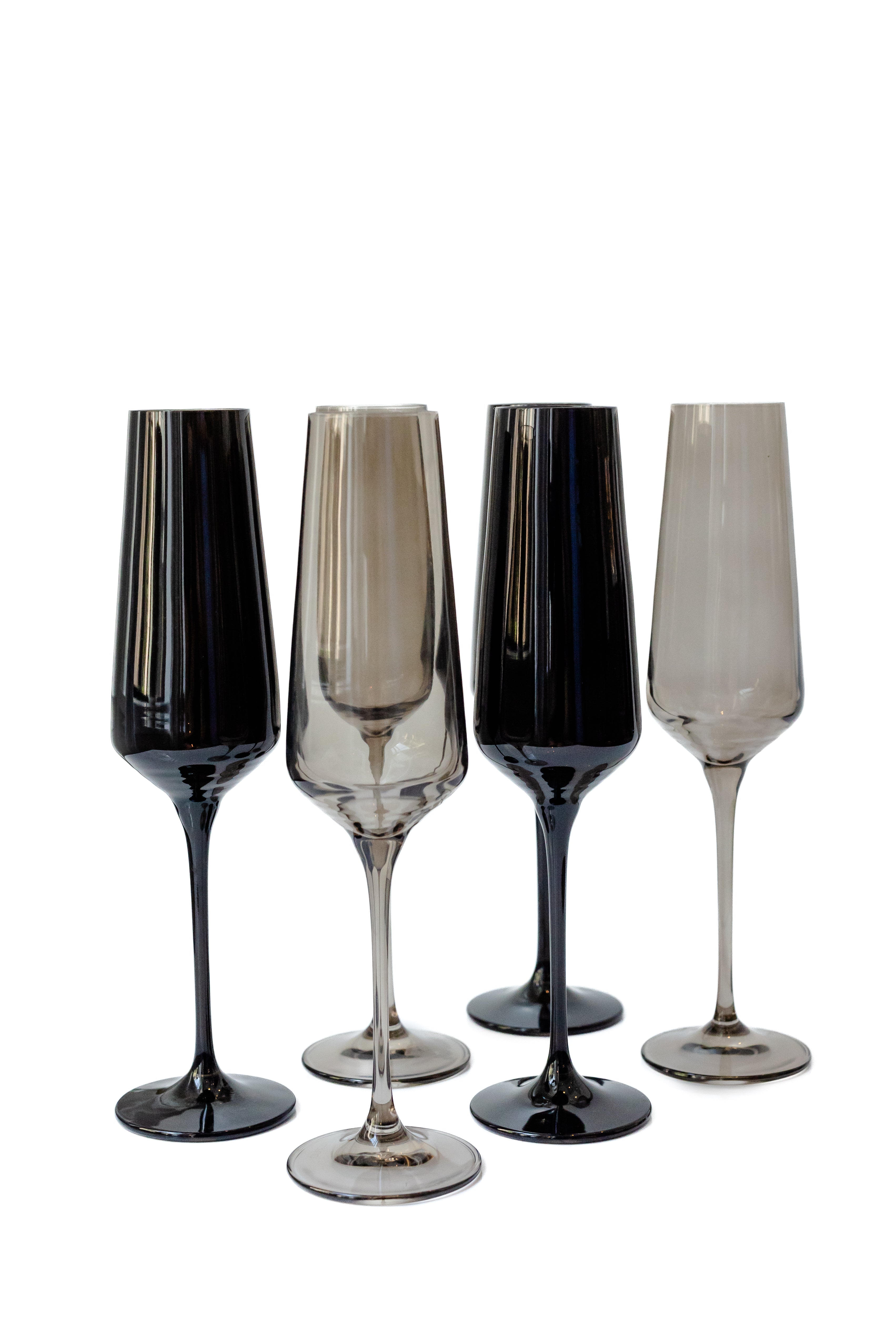 This set of six champagne flutes presents a contemporary take on traditional stemware. Hand – blown by Polish artisans from high – quality glass, it includes three black and three smoke – gray flutes. The tall, narrow bowls with slightly flared rims are ideal for maintaining the bubbles in champagne and other sparkling beverages.
