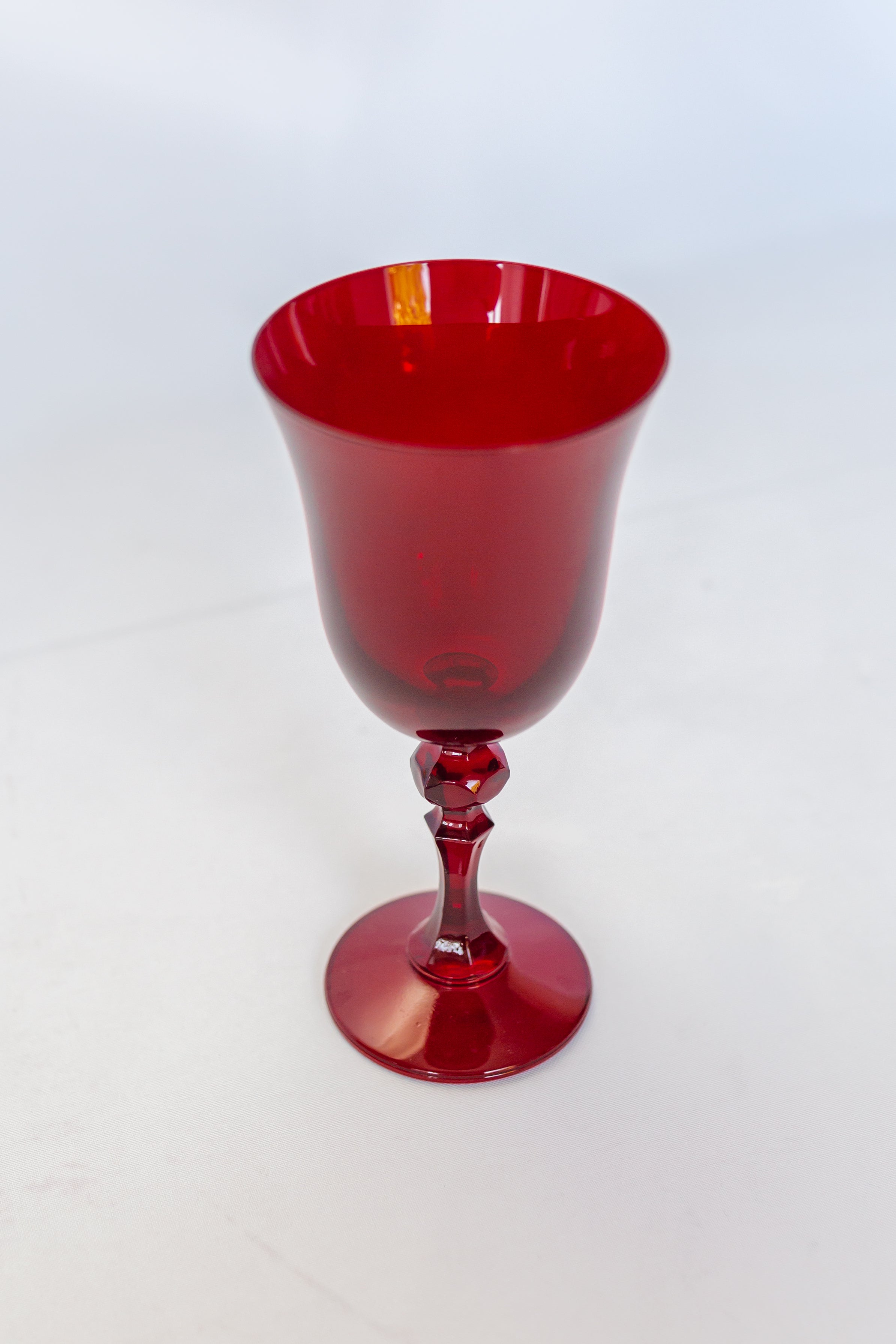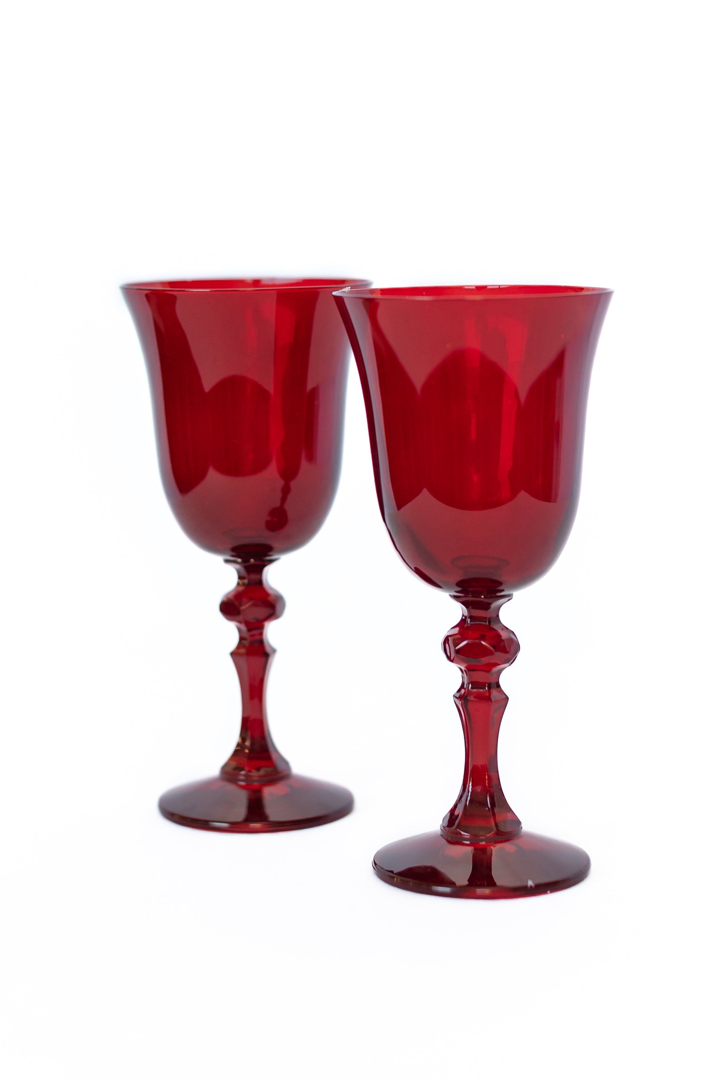 This set of two stemmed goblets is a remarkable addition to any table setting. Crafted from hand – blown red – tinted glass by Polish artisans, they feature a flared bowl that enhances aroma release and a stem with a knobby accent for added visual appeal. Their wide, flat base ensures stability while sipping your favorite beverage.
