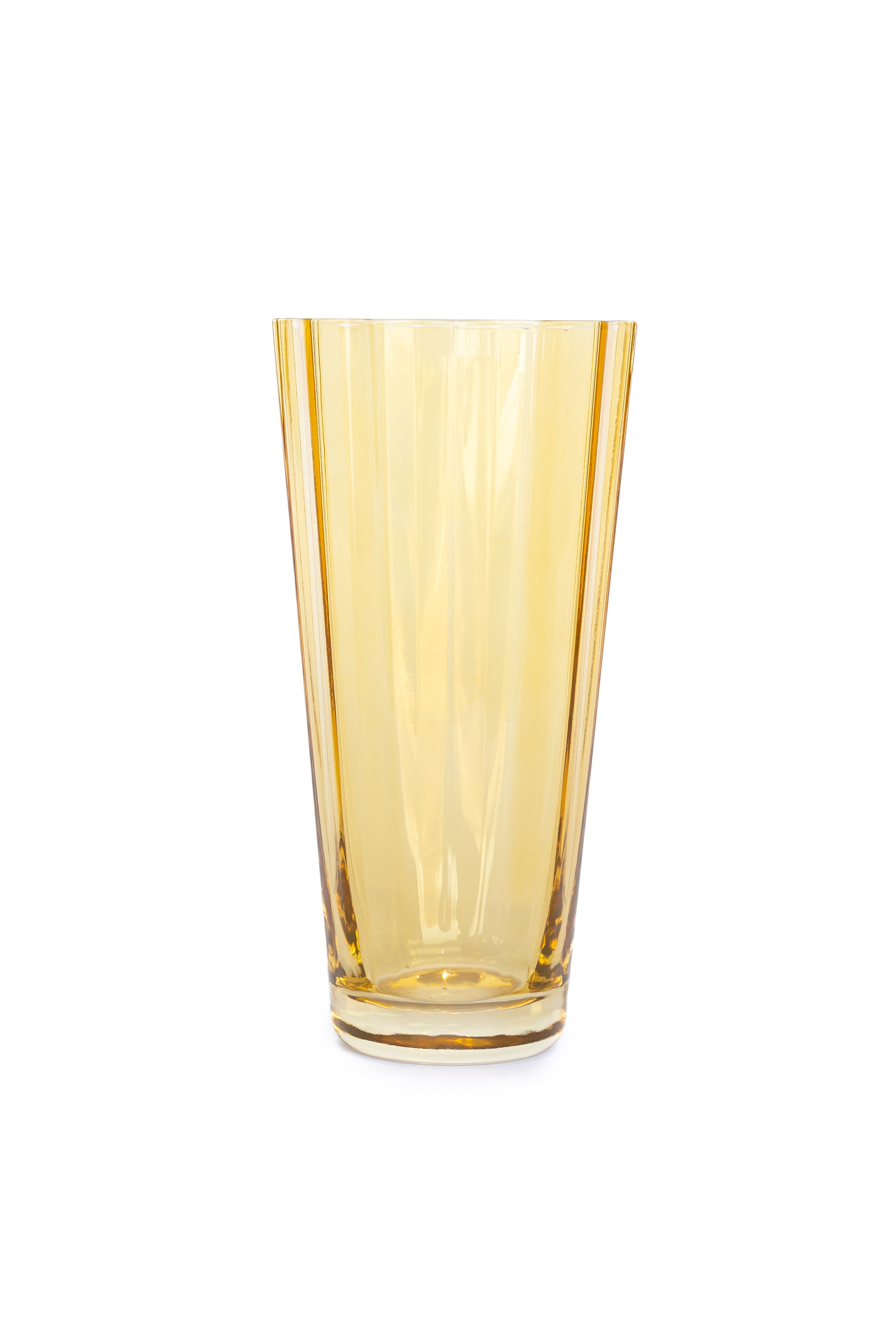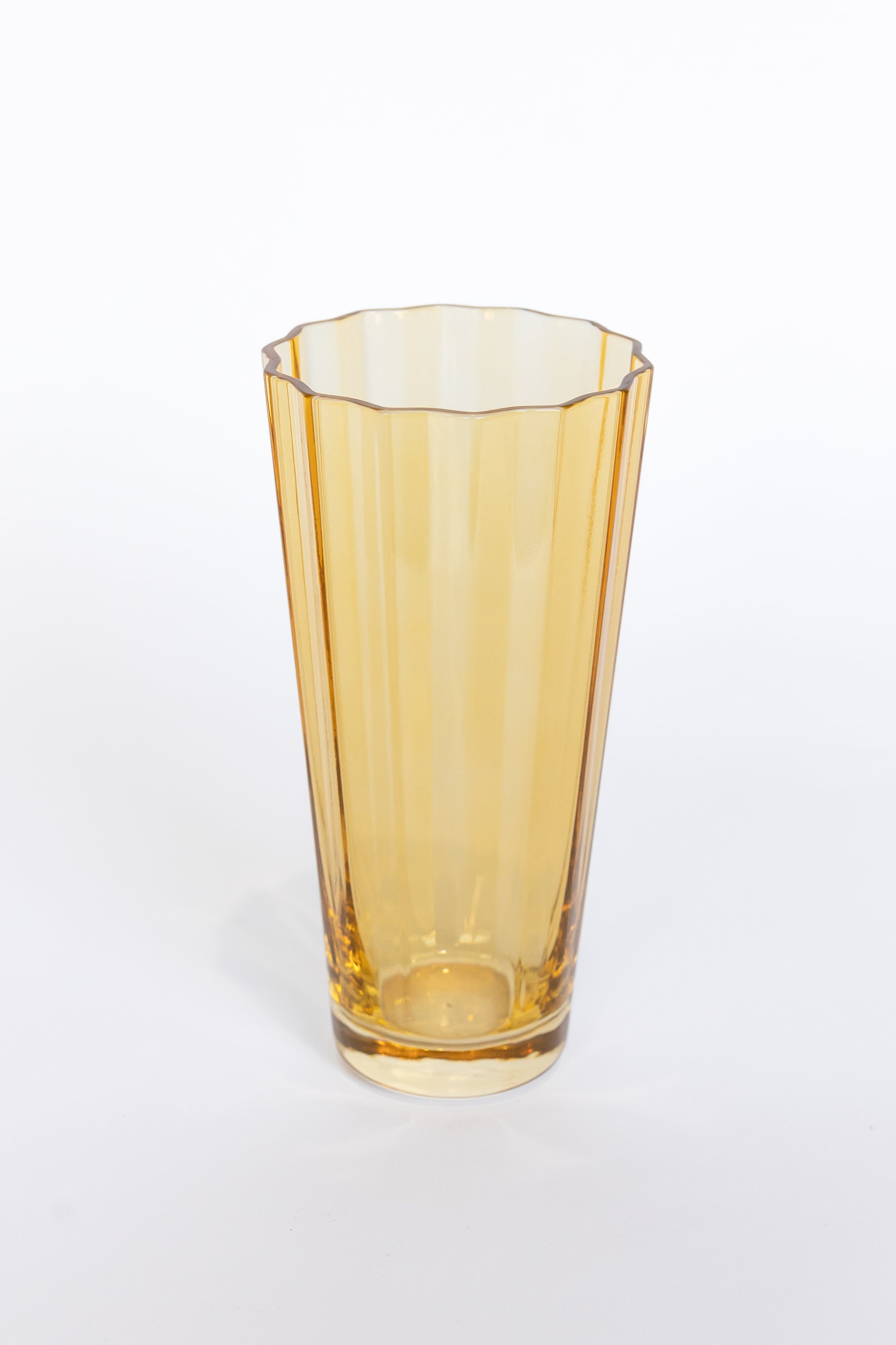 This set of two decorative vases is a true work of art. Hand – blown by glass artisans, they feature a slender, elongated body with vertical fluted patterns that enhance their height and elegance. The warm amber – tinted translucent glass gives off a soft, reflective glow, and the scalloped or straight rim adds a unique and refined touch.