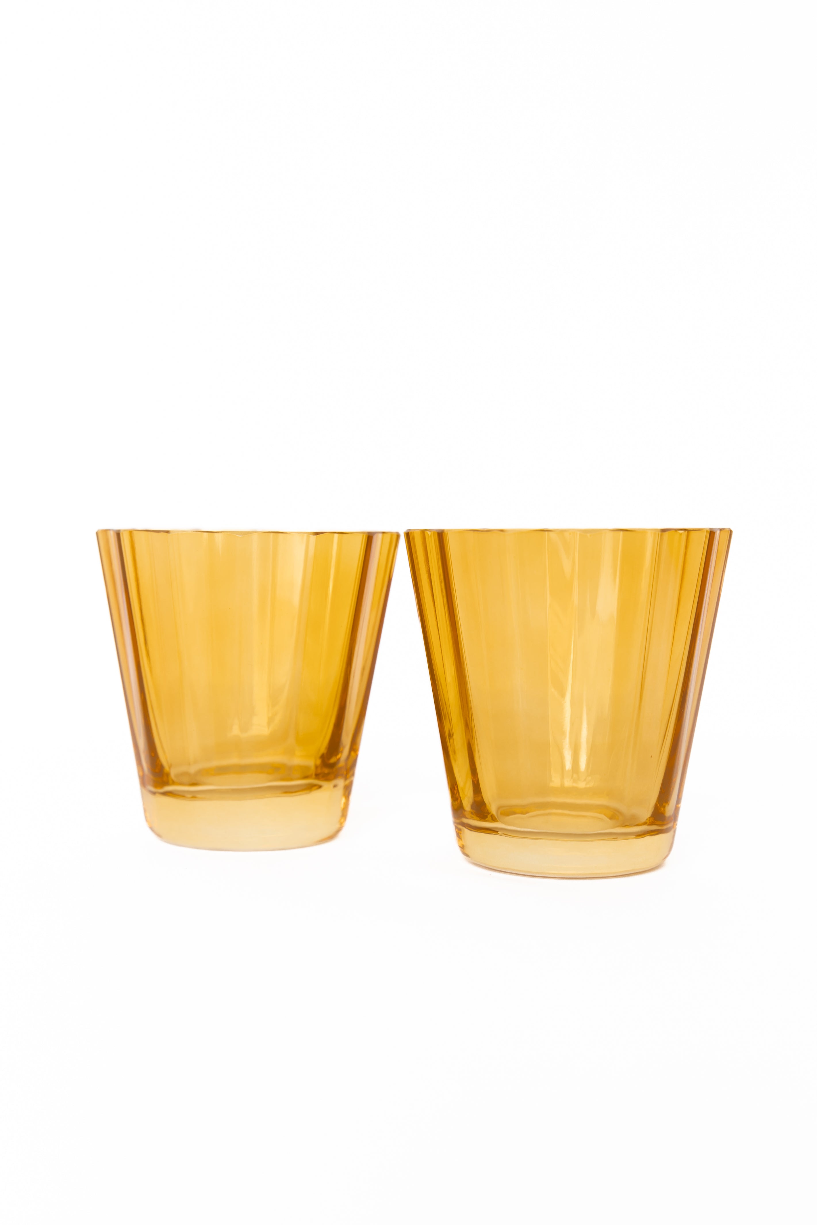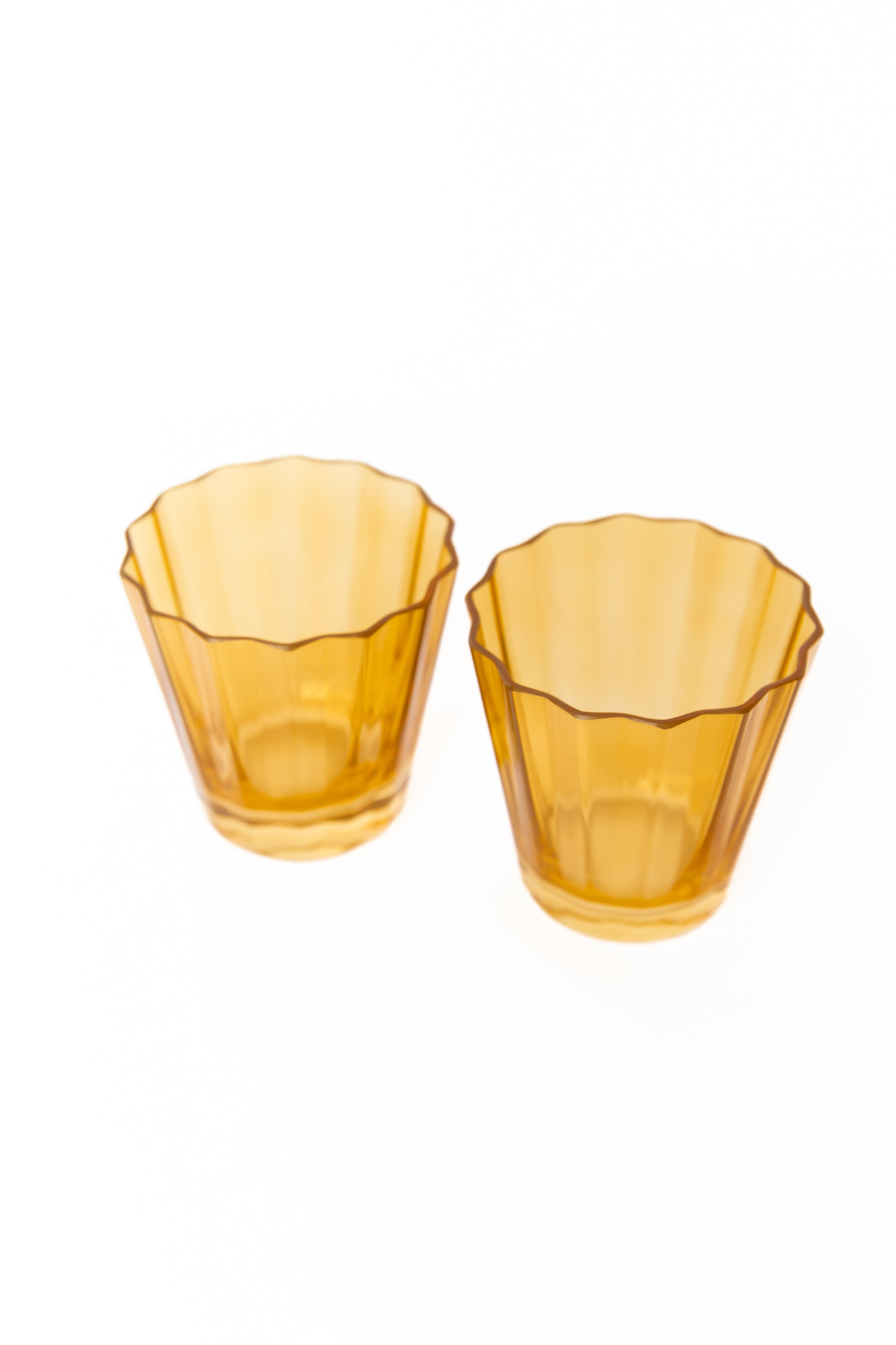 This set of two drinking tumblers brings together practicality and style. Crafted from high – quality amber – colored glass, they have vertical flutes for a better grip and visual interest. The scalloped rim adds a touch of elegance, making them suitable for various occasions.
