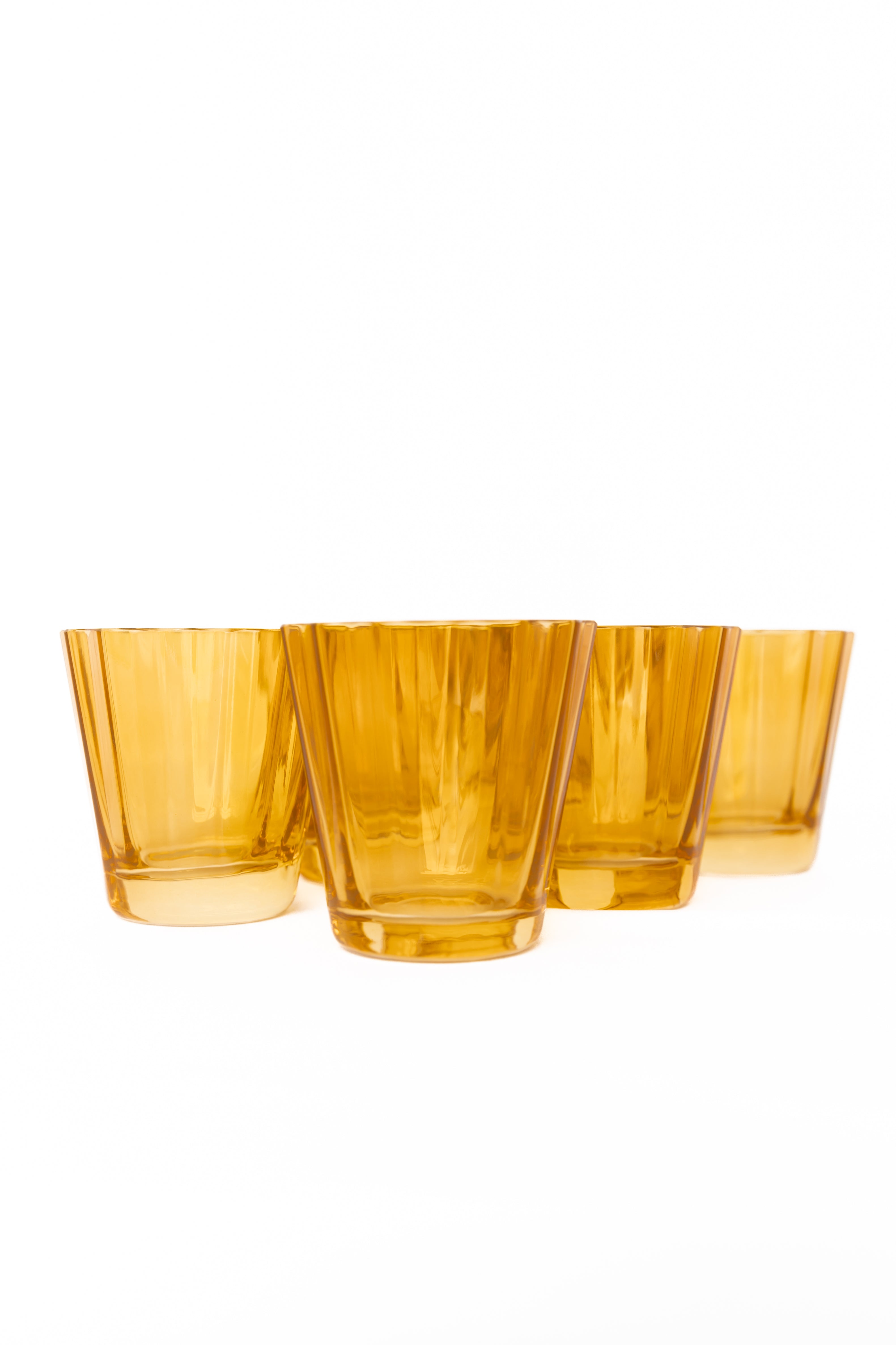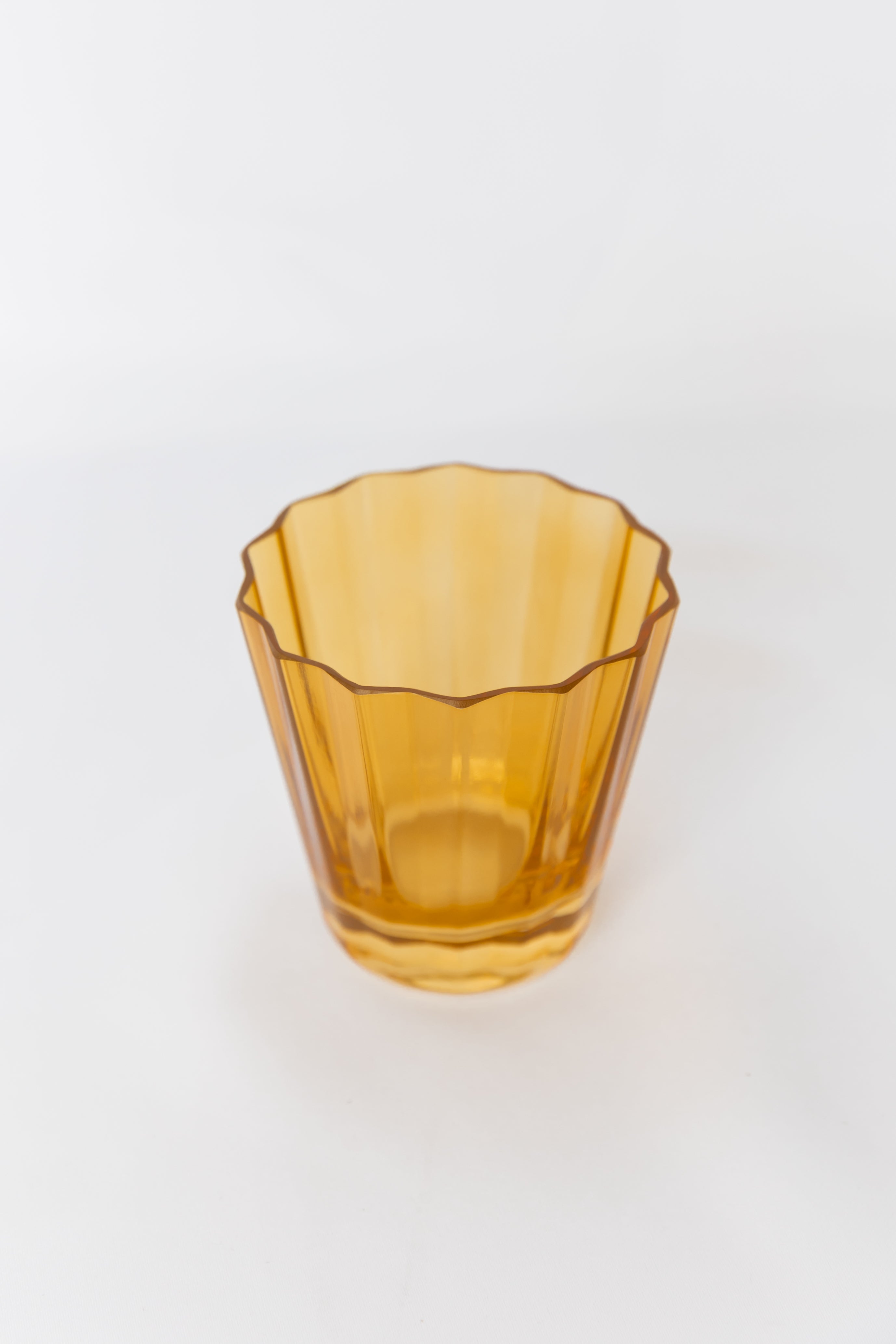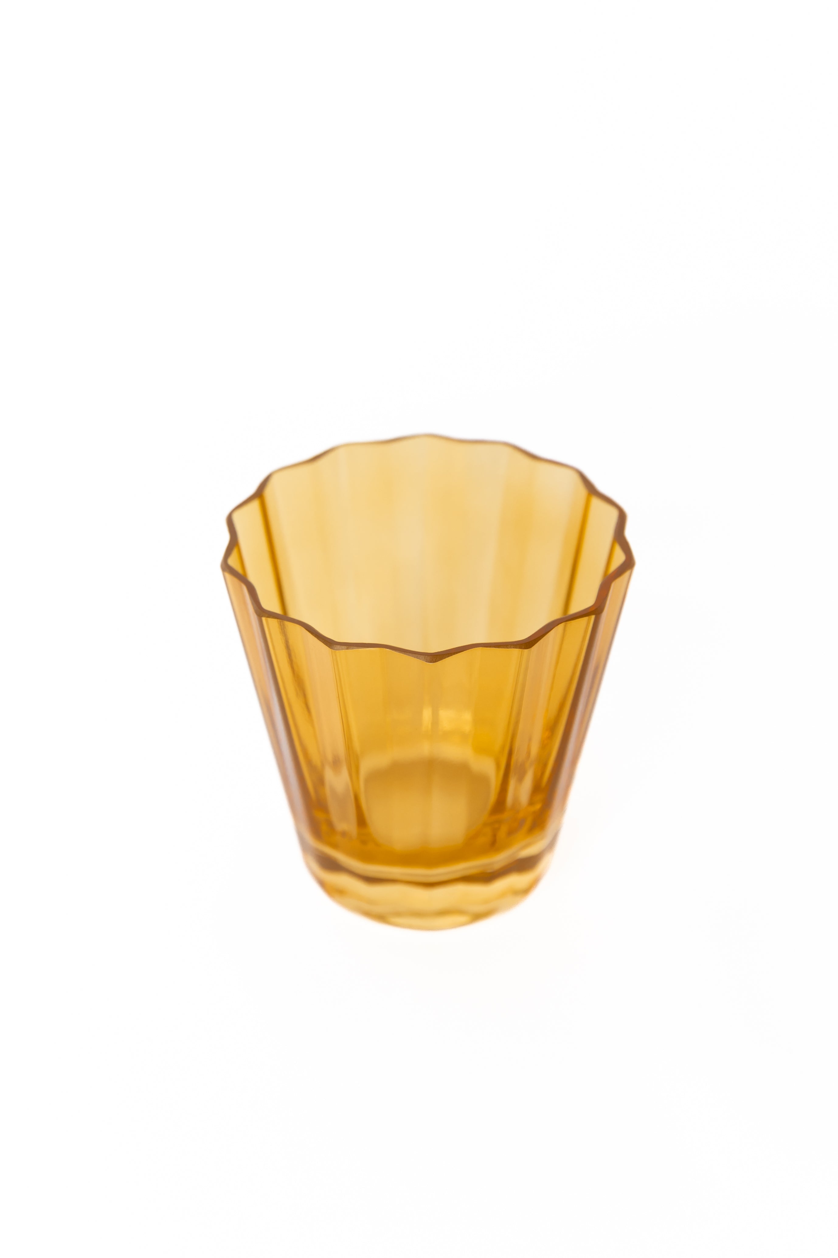This set consists of six drinking glasses expertly crafted by Polish glass artisans. Made from high – quality amber – hued glass, these glasses feature a scalloped rim and vertical fluting. The tapered base adds stability, and their elegant design makes them a great addition to any table setting.
