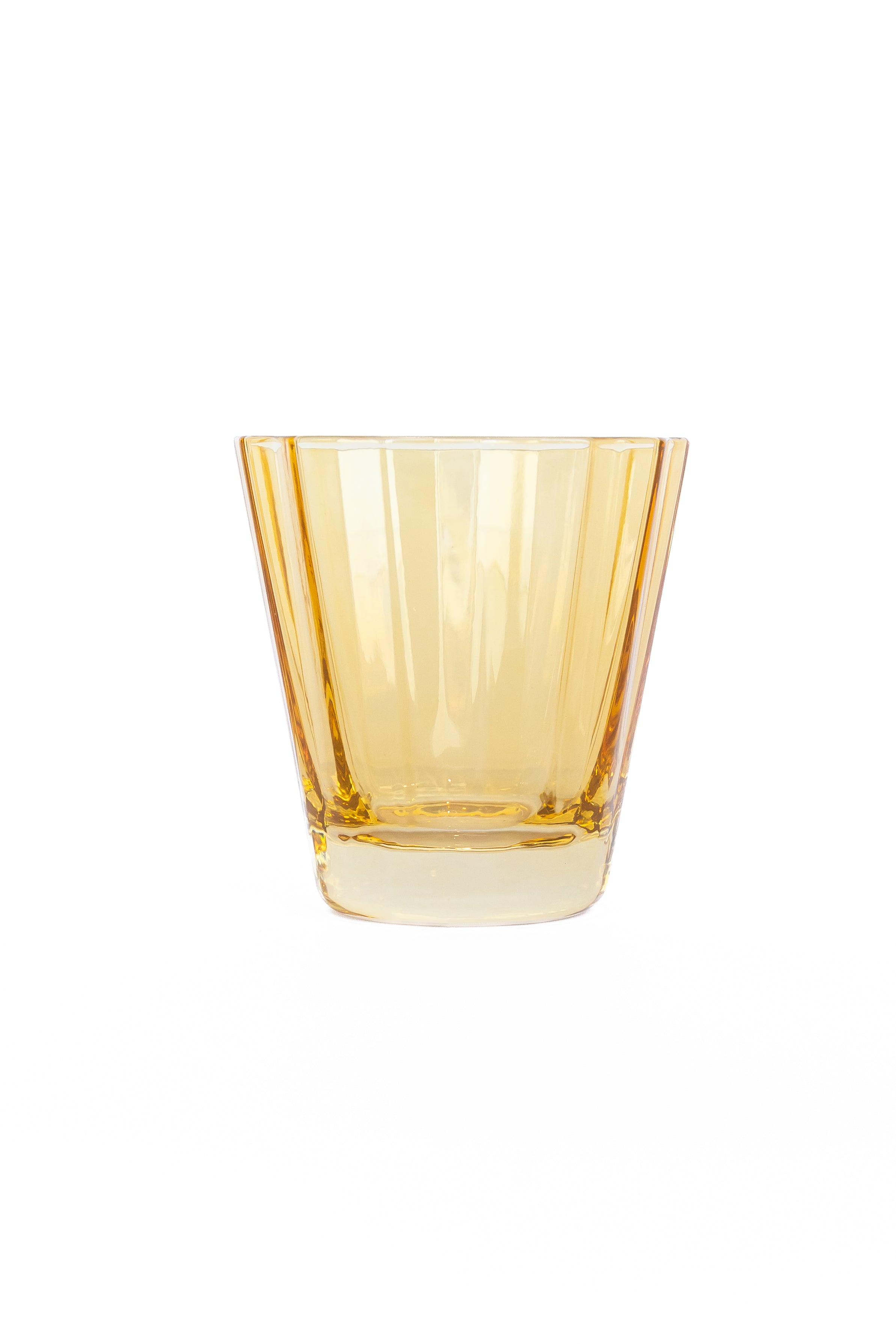 This set of six vertically – fluted dual – rim glass tumblers is a remarkable addition to any dining setup. Hand – blown by Polish glass artisans, they feature a warm, translucent amber/yellow tint. The glasses are designed with vertical fluted patterns and a tapered shape, available with either scalloped or angular rims, offering both style and practicality for serving beverages.