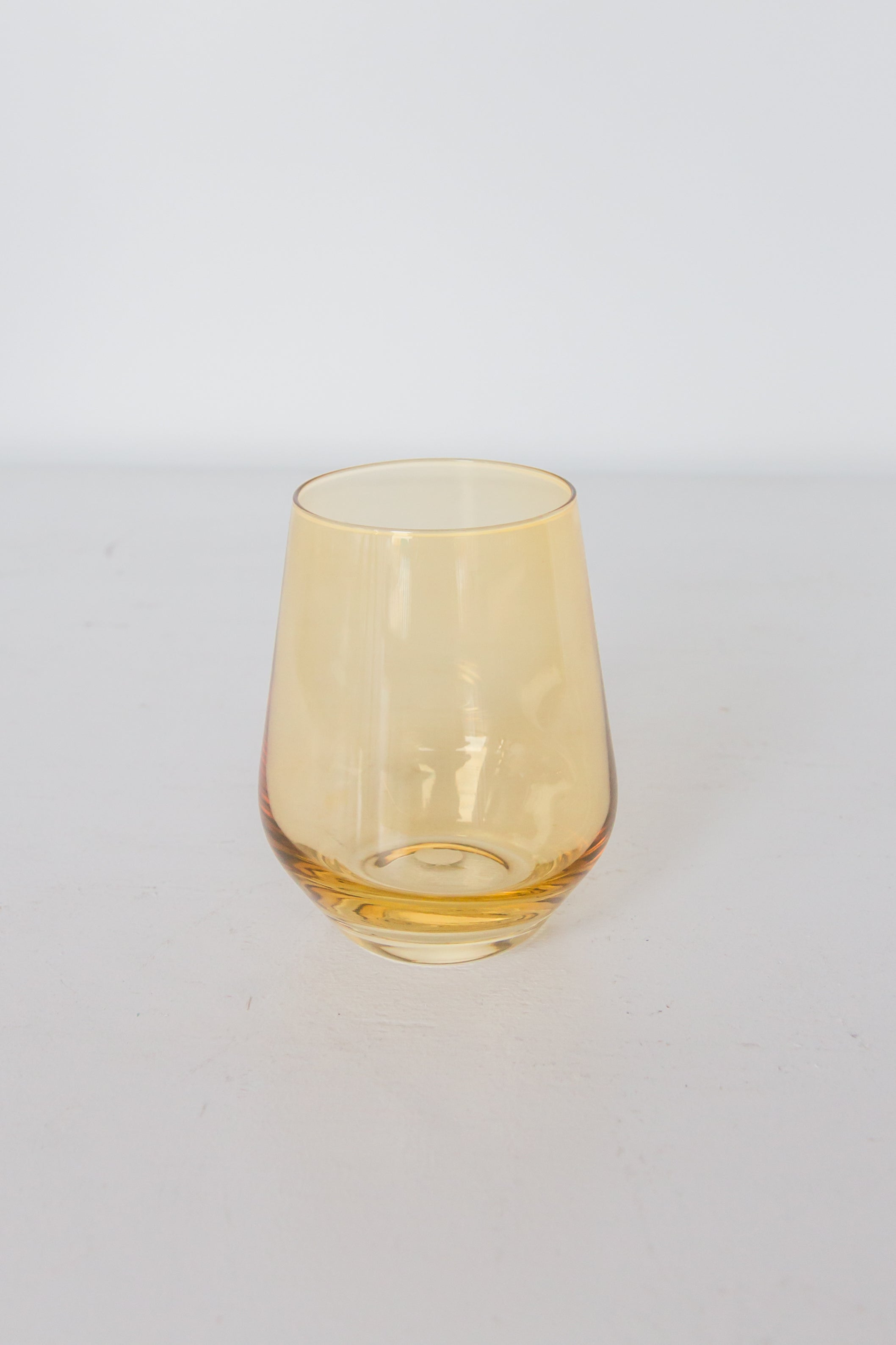 This set of two stemless drinking glasses offers a modern and minimalist aesthetic. Crafted from hand – blown colored glass in Poland, they feature a warm amber – yellow tint with a subtle gradient. Their wide base and smooth, rounded design make them both stable and elegant, suitable for various beverages.