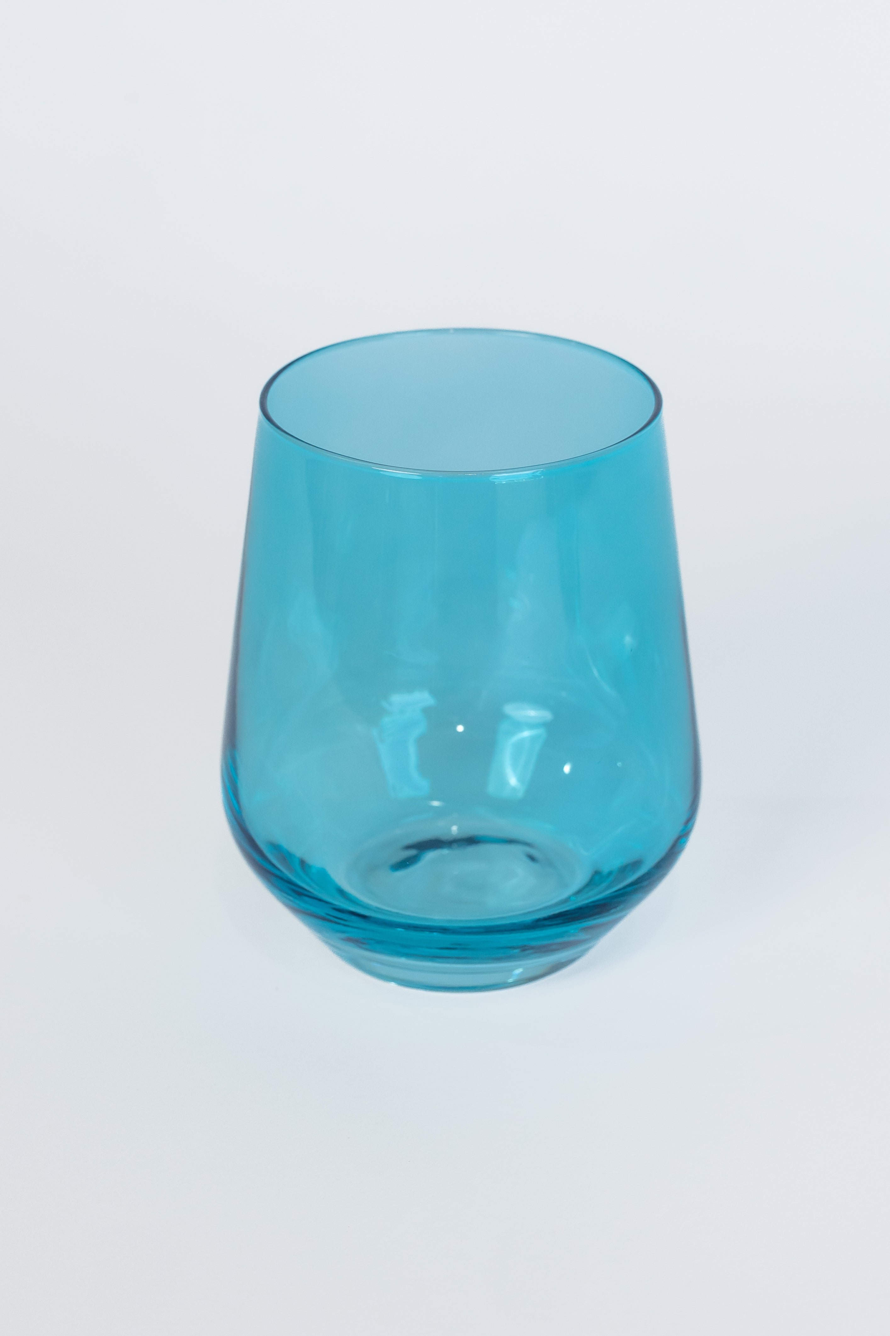 This product is a set of six stemless drinking glasses. Crafted from high – quality glass, they feature a vibrant, uniform turquoise color. The glasses have a unique design with a wide top, a slightly tapered mid – section, and a narrower base, offering a modern and sleek look suitable for various beverages.