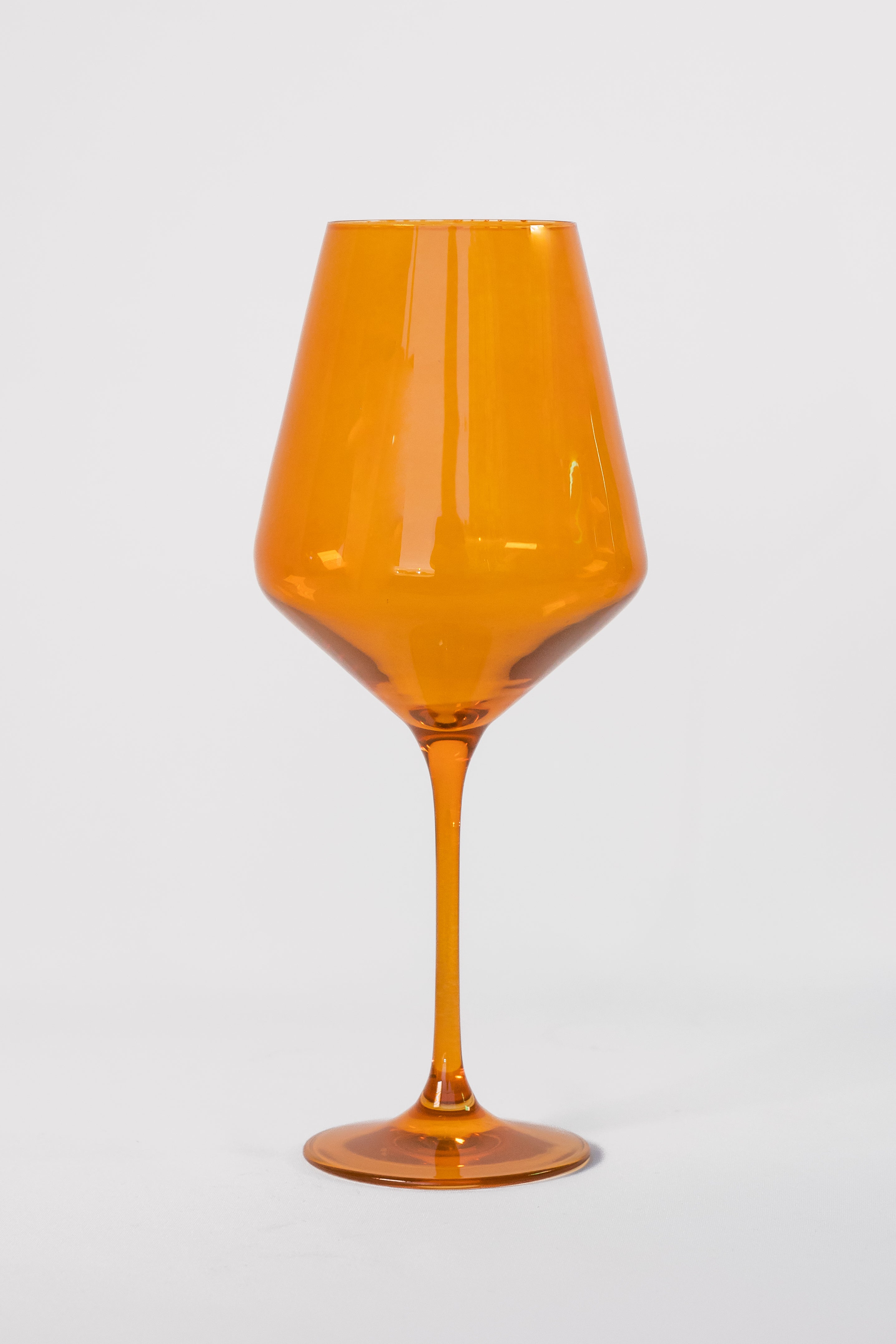 This set of two stemmed wine glasses combines functionality and style seamlessly. Hand – blown, they are made from vibrant orange colored glass. The modern design features a tapered bowl, slender stem, and flared base, making them perfect for sipping wine while also adding a decorative touch to any setting.