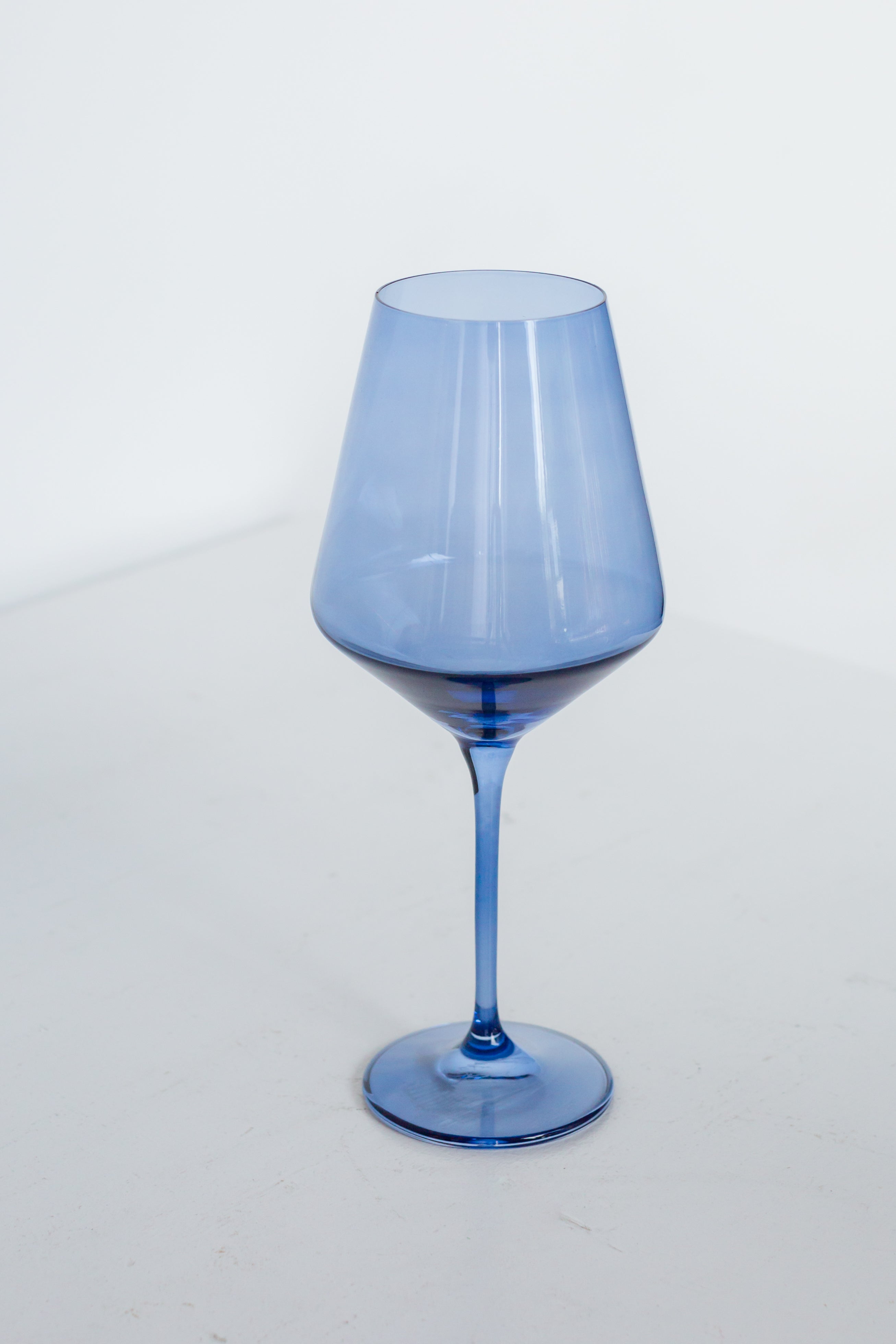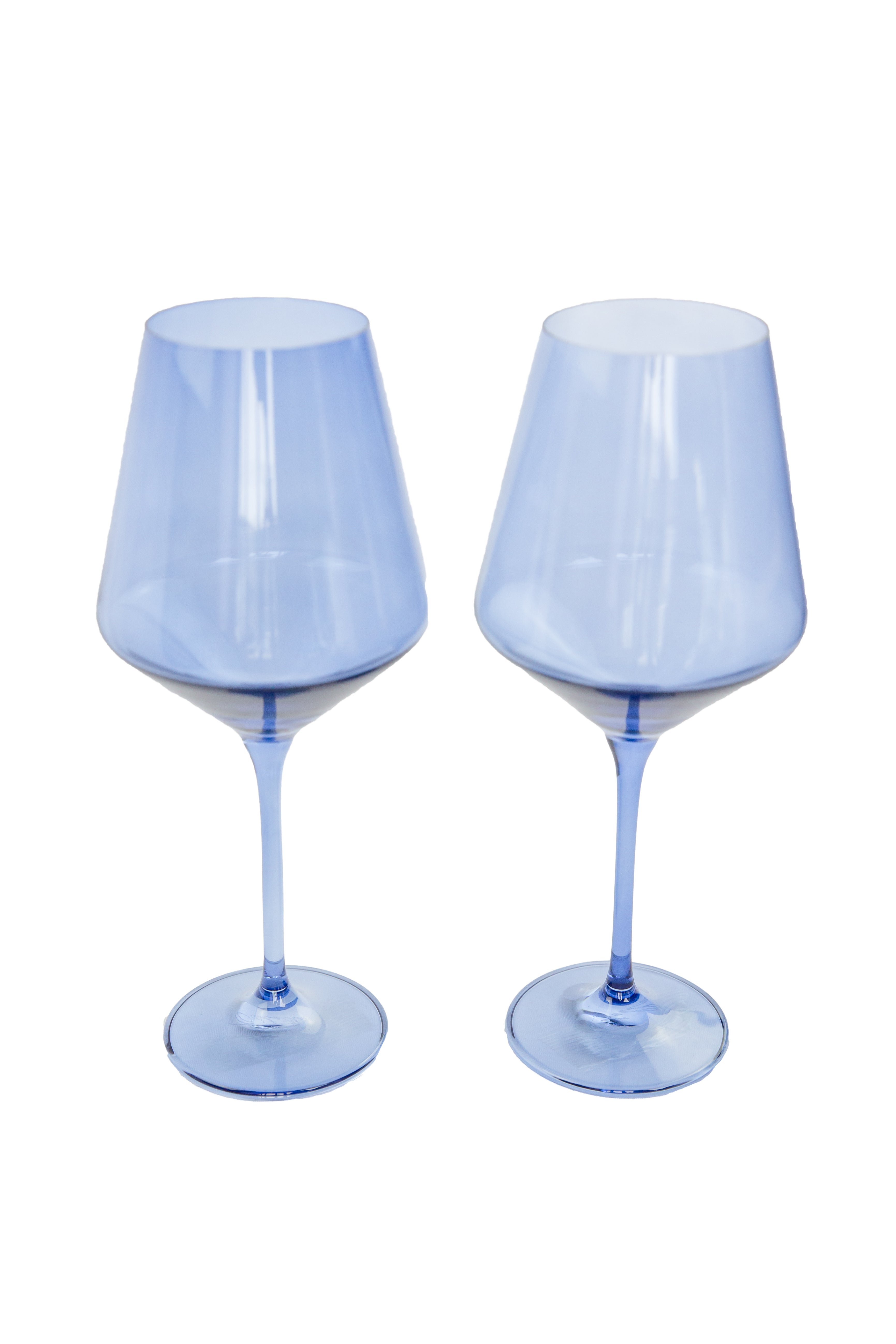 This set includes two modern, minimalist wine glasses. Hand – blown by skilled artisans, they are crafted from high – quality glass with a uniform light blue hue. The glasses feature a smooth, curved, wide – tapered bowl, a slender stem, and a wide, flat base, making them both elegant and perfect for wine – drinking.