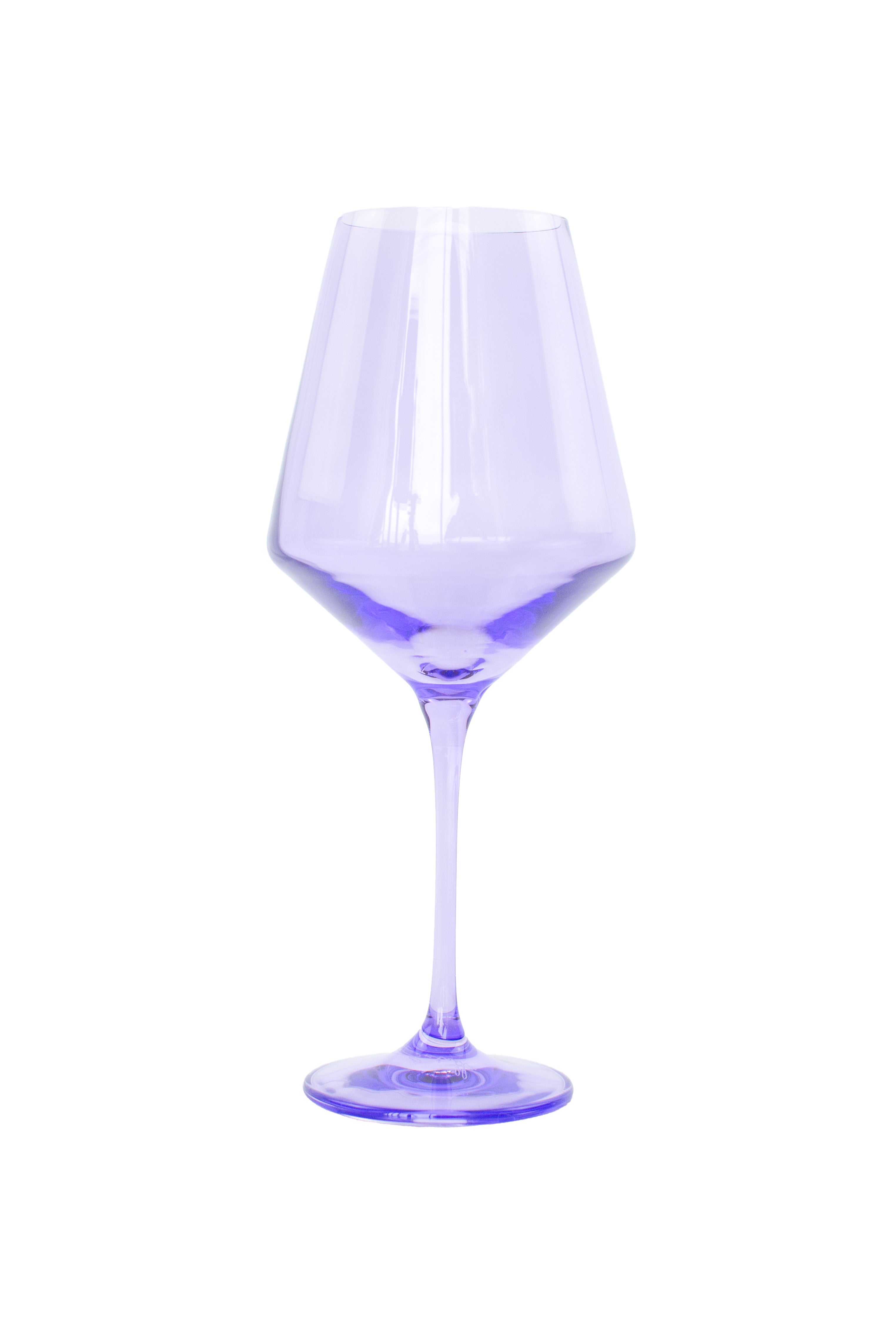 This set includes two modern minimalist stemmed wine glasses. Hand – blown by glass artisans in Poland, they are crafted from light lavender – purple colored glass. The glasses feature a smooth, slender stem and a wide, slightly tapered bowl, making them a perfect blend of functionality and aesthetic appeal for wine enthusiasts.