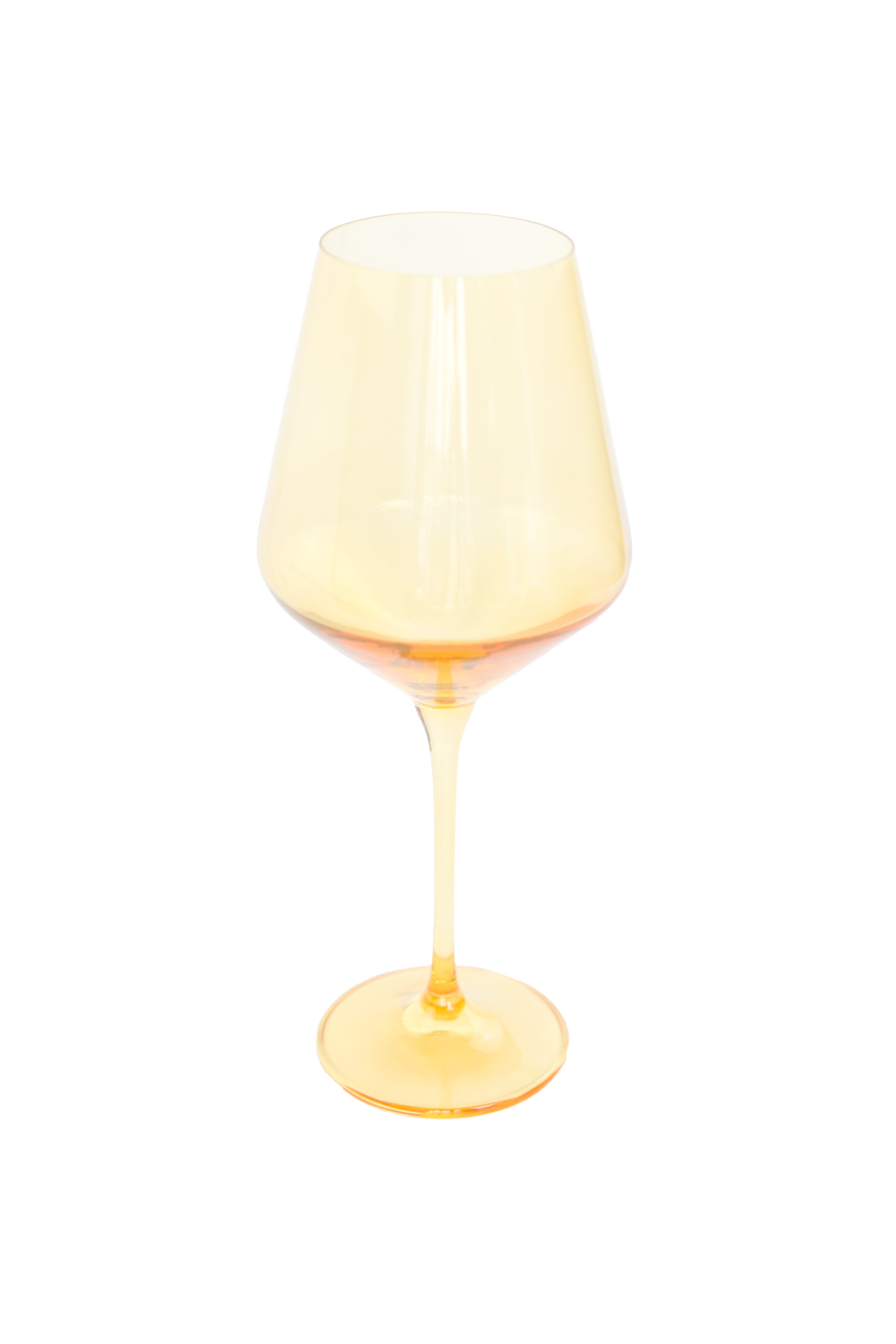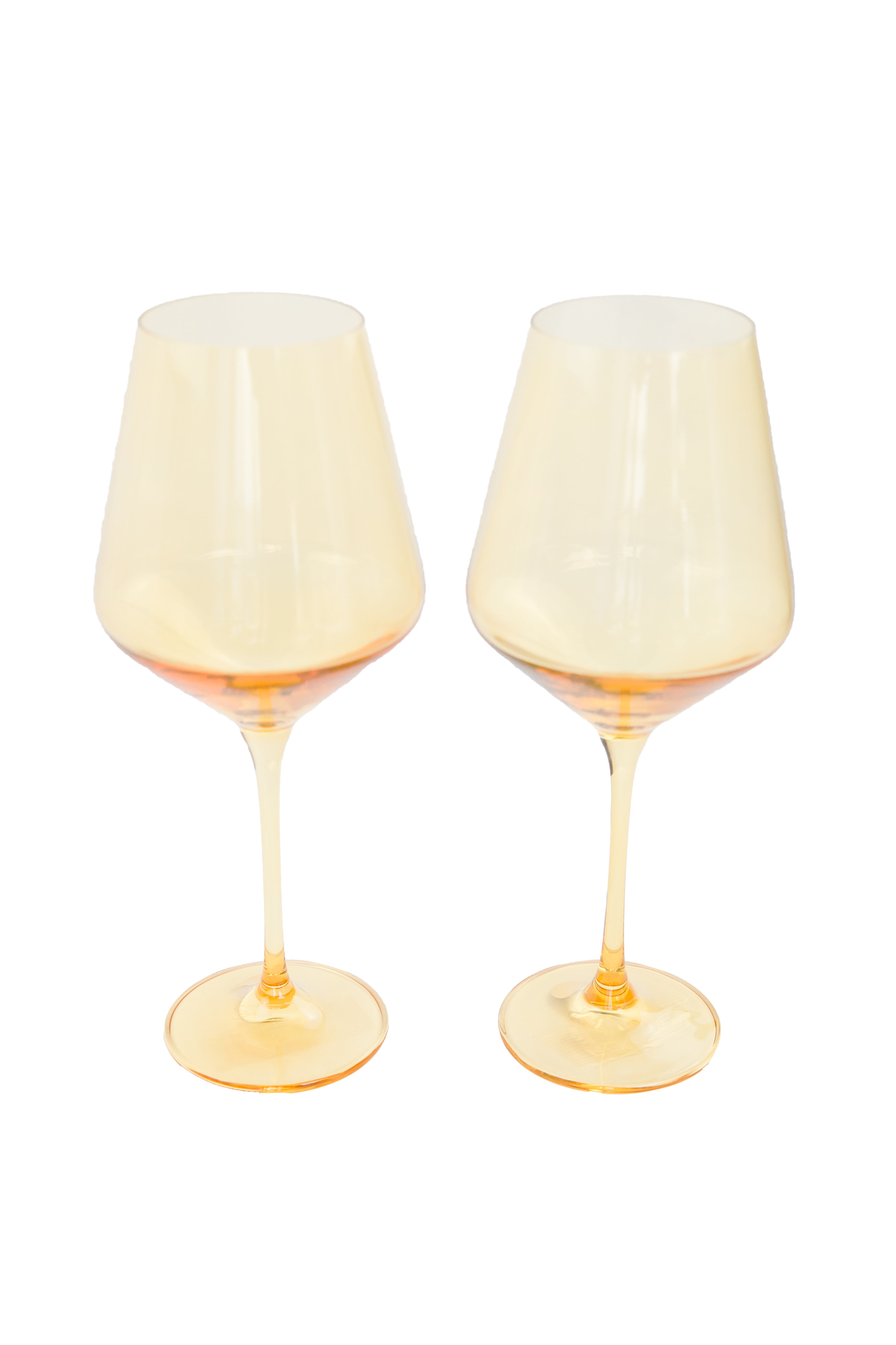 This product is a set of two modern stemmed wine glasses. Hand – blown by artisans in Poland, they are crafted from high – quality colored glass with an amber – yellow tint. The glasses feature a wide, slightly conical bowl, a long slender stem, and a stable flat base, offering both functionality and an elegant aesthetic.