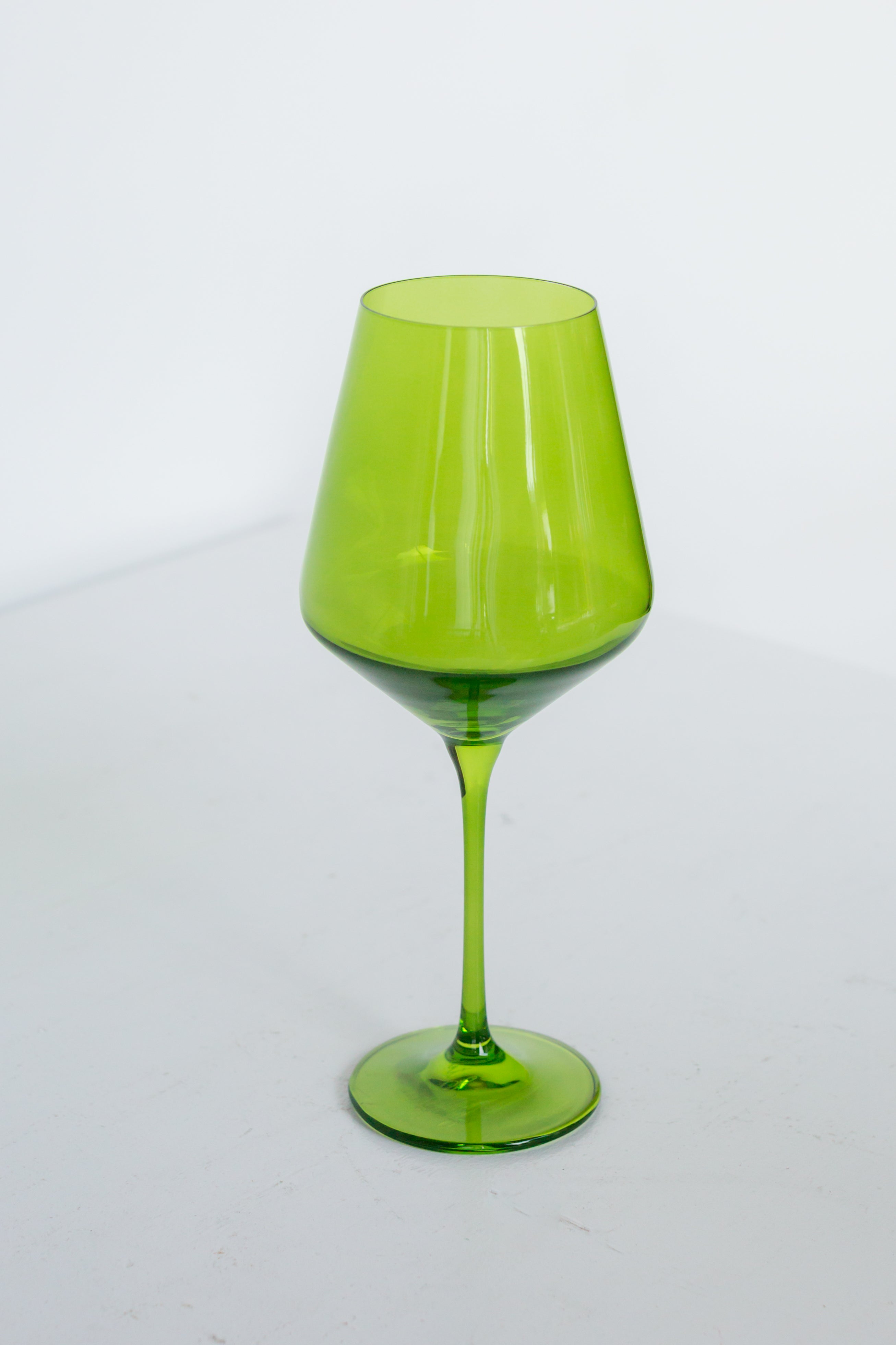 This set of stemmed wine glasses is a masterpiece crafted by Polish artisans from hand – blown colored glass. They showcase a vibrant, uniform bright green color with a darker gradient at the bowl’s base. The wide, angular and slightly tapered bowl along with the long, slender stem not only adhere to the typical red – wine glass design but also bring a modern, minimalist aesthetic.